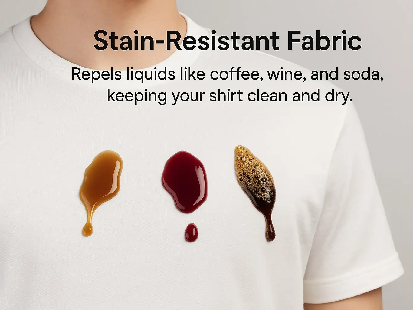 ·Advanced Stain Protection: Our T-Shirt features advanced spill, water, and stain protection. It repels liquids instantly, keeping you clean and confident. Say goodbye to spills and hello to effortless confidence.