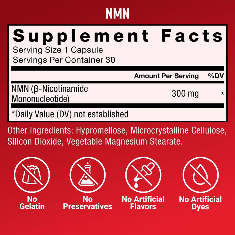 ·BOOST NAD+ LEVELS THAT DECLINE WITH AGE: NMN helps replenish NAD+ levels, which can naturally decline as you age. Elevating NAD+ helps enhance cellular repair and regeneration, supporting longevity and overall well-being.