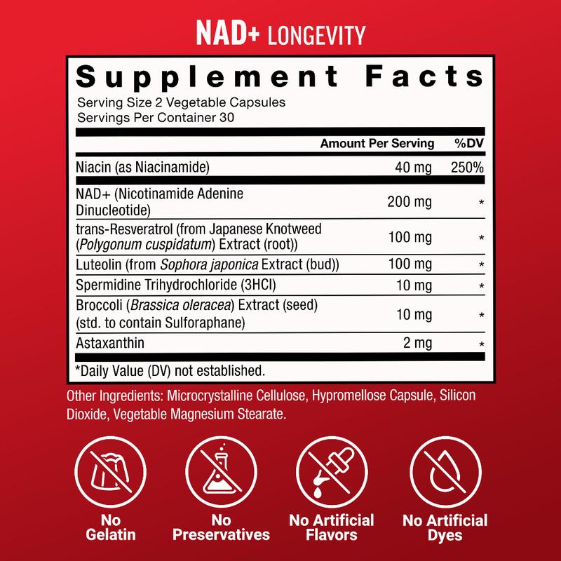 ·SUPPORT YOUTHFUL ENERGY: NAD+ is vital for cellular energy, DNA health, and repair, but levels decline with age. This formula helps combat fatigue, boost cognition, and promote longevity by fueling mitochondria for youthful vitality.