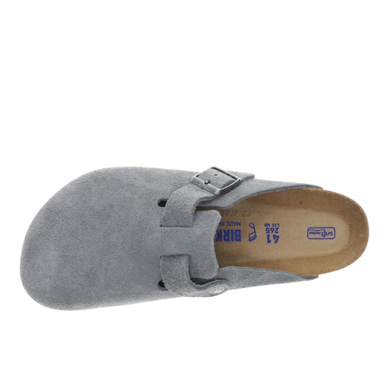 5. BIRKENSTOCK Womens Boston Soft Footbed Suede Leather Clogs Casual - Grey