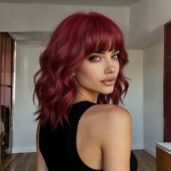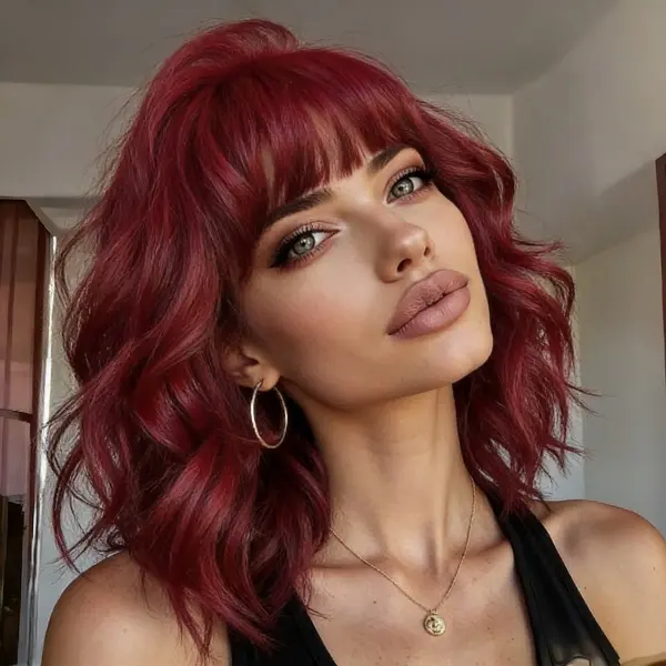 🌟 Short Wavy Burgundy Red Wig 🌟