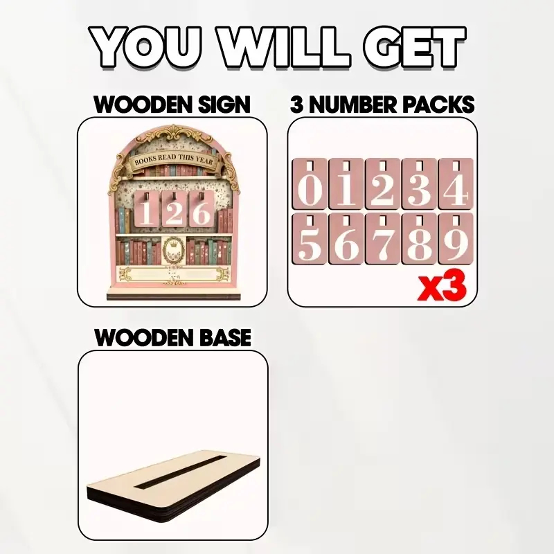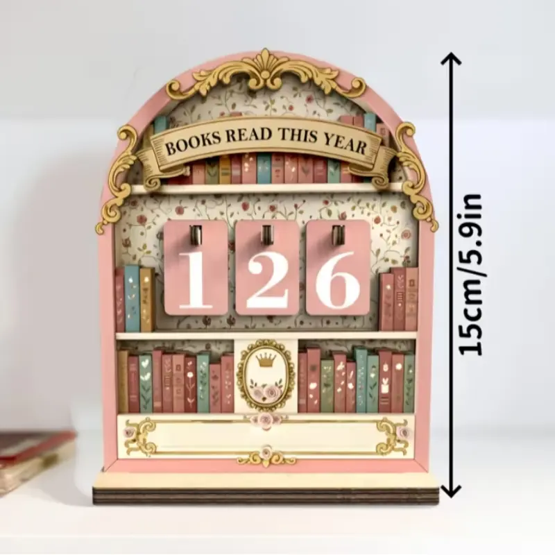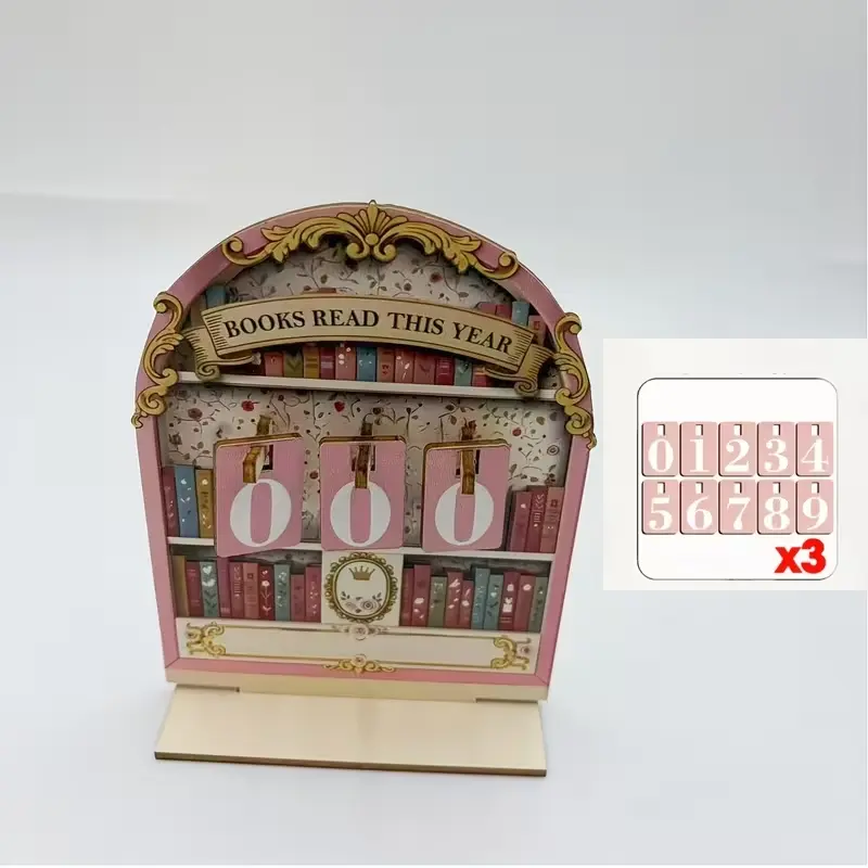 Wooden Vintage Book Reading Tracker, Track Up to 999 Books, DIY Text Base, Office Bookshelf Decor, Vintage Home Decor, Gift for Readers Teachers Writers, Ornaments