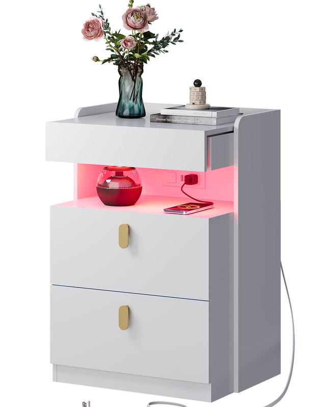 ·【Sturdy & Durable Design】Made from high-quality materials, this nightstand with drawers supports heavy loads. Use it as a bedroom night stand, living room end table, or gaming room side table. Glossy end table works as side table or workspace. Solid wood build lasts through years of rearranging.