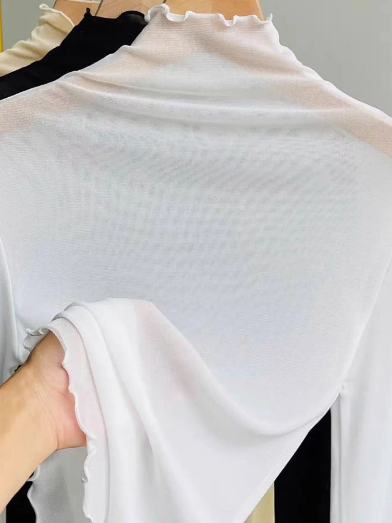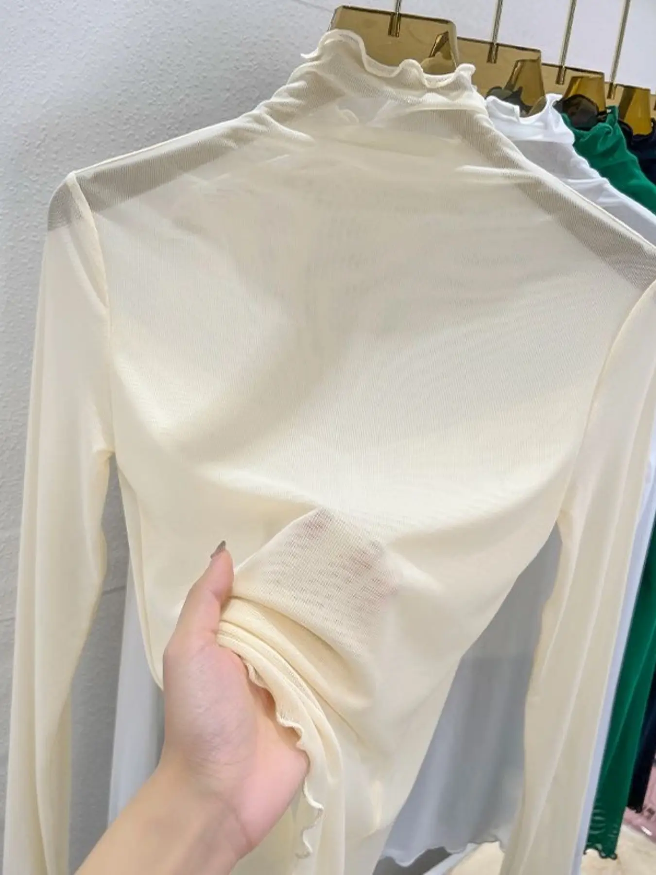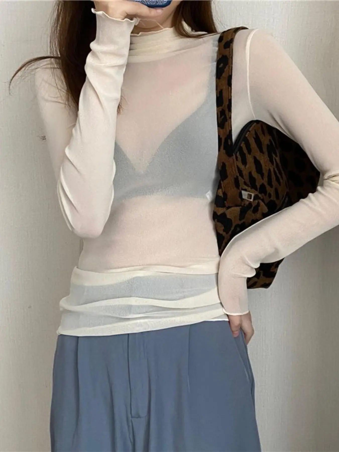 Women's Solid Color Transparent Sheer Basic Short Sleeve T-Shirt, Elegant Long Sleeve High Neck Top, Perfect for Club Parties and Dates, Blouse, Womenswear