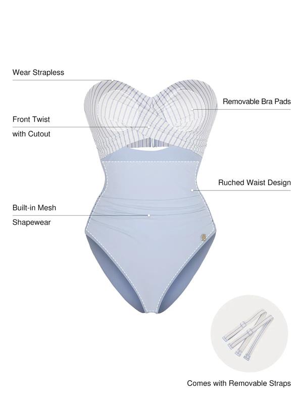 Elevate your beach style with the Popilush Bandeau One-Piece Swimsuit. This turquoise cutout ruched bathing suit features a push-up design for a flattering silhouette. Perfect for beach pool vacations, it offers tummy control for a confident look. Ideal for women seeking a stylish and functional swimwear option.