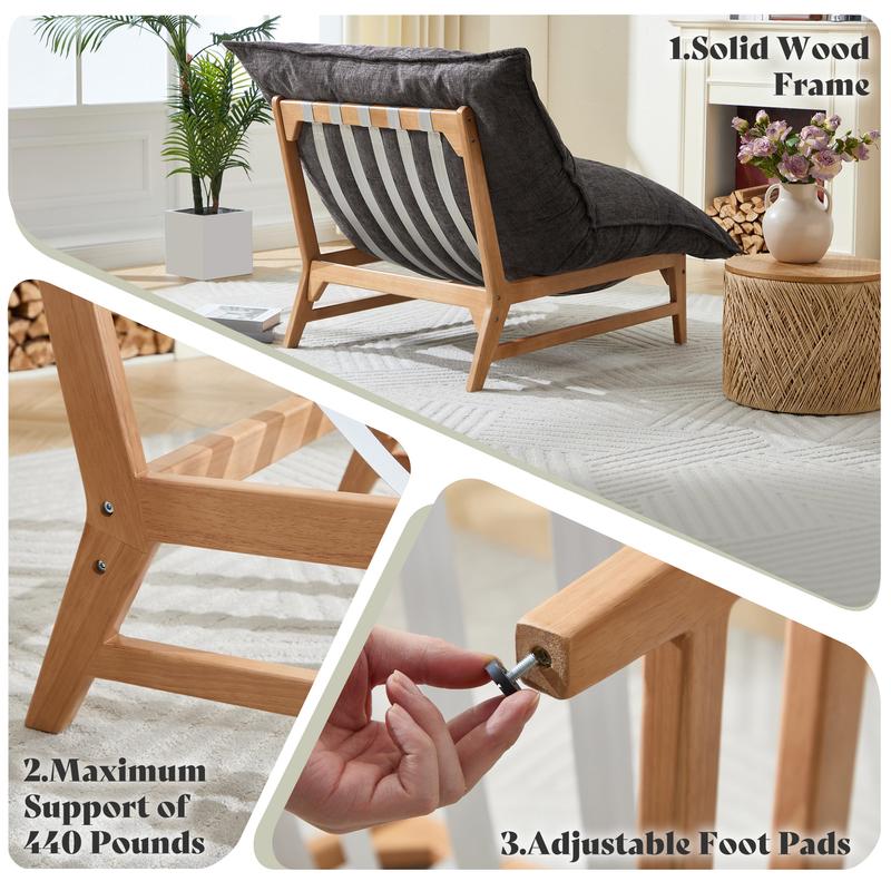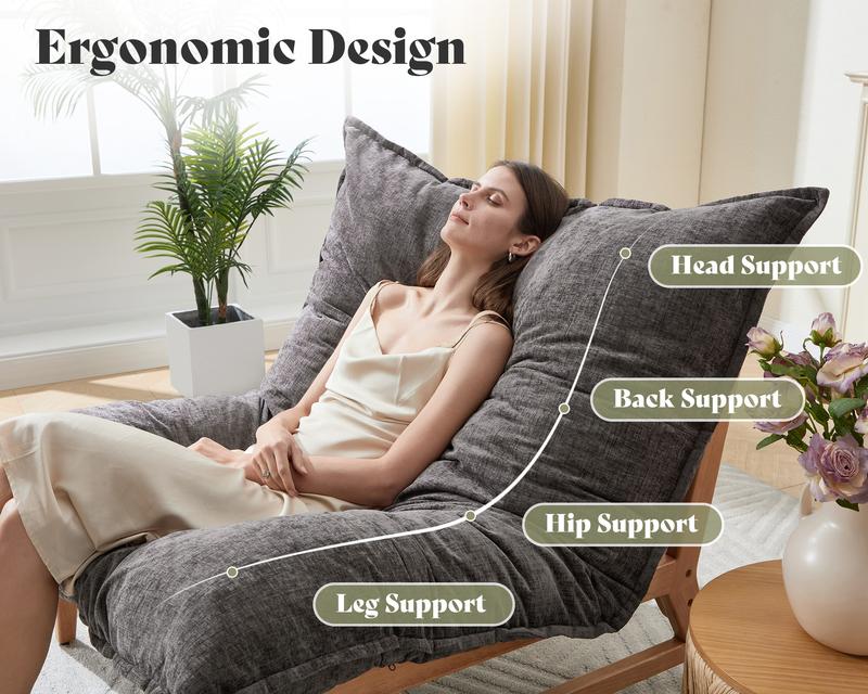·Durable and Sturdy: Crafted with a solid rubberwood frame, this comfy lounge chair ensures durability, stability, and long-lasting support. The strong frame deliver steady comfort day after day. Adjustable foot pads customization for uneven floors.