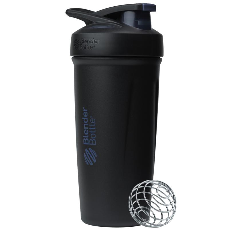 The BlenderBottle Stainless Steel Sport push-button insulated protein shaker provides sleek style and ultimate ease. The shaker bottle’s spill-proof locking lid opens and closes with the touch of a button. A flexible, ergonomic carry loop provides a comfortable hold. The patented mixing system utilizes the BlenderBall wire whisk to mix even the most stubborn protein powder, and a rounded base ensures a smooth blend. Double-wall insulated stainless steel keeps drinks cold for up to 24 hours. Measurement markings on the inside of the bottle add to the ease of creating perfect protein shakes. Leak proof; top-rack dishwasher safe; BPA and phthalate free. Manufacturer’s limited lifetime warranty.