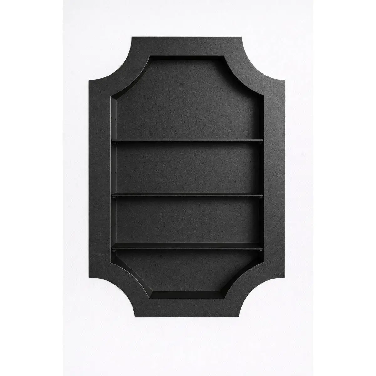 Crafted from precision-welded steel and finished in your powder-coat of choice, The Crest introduces a deliberate material contrast, allowing it to read as an inserted architectural element rather than a continuation of the wall. Designed to fit cleanly between standard studs, it transforms unused wall cavities into purposeful design moments, with optional, adjustable shelving and the ability to incorporate custom wallpaper or specialty backdrops—an elevated detail that allows each piece to be tailored to its setting, adding depth, texture, and a distinctly bespoke finish.