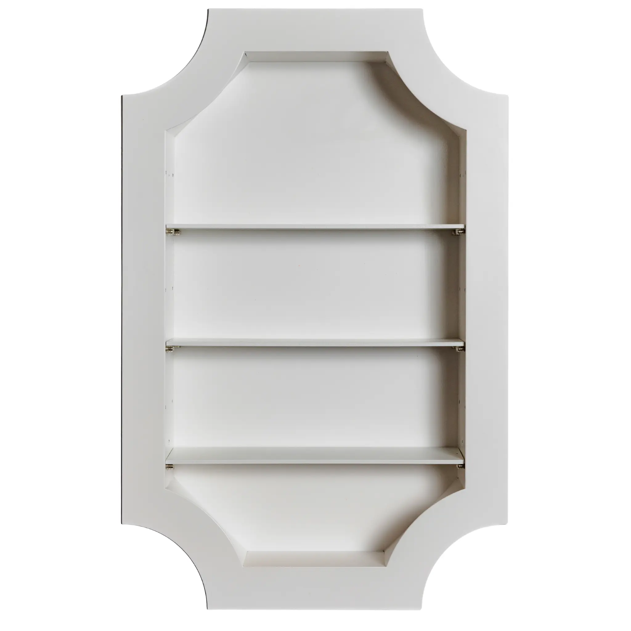 The Crest is a sculptural built-in from the Grotto Collection, named for both its form and its meaning—a crest as a highest point, a natural adornment, and a symbolic marker of intention. Its stepped crown and faceted silhouette rise and resolve with architectural precision, framing the interior space and elevating what it holds while adding rhythm and depth to the wall itself.