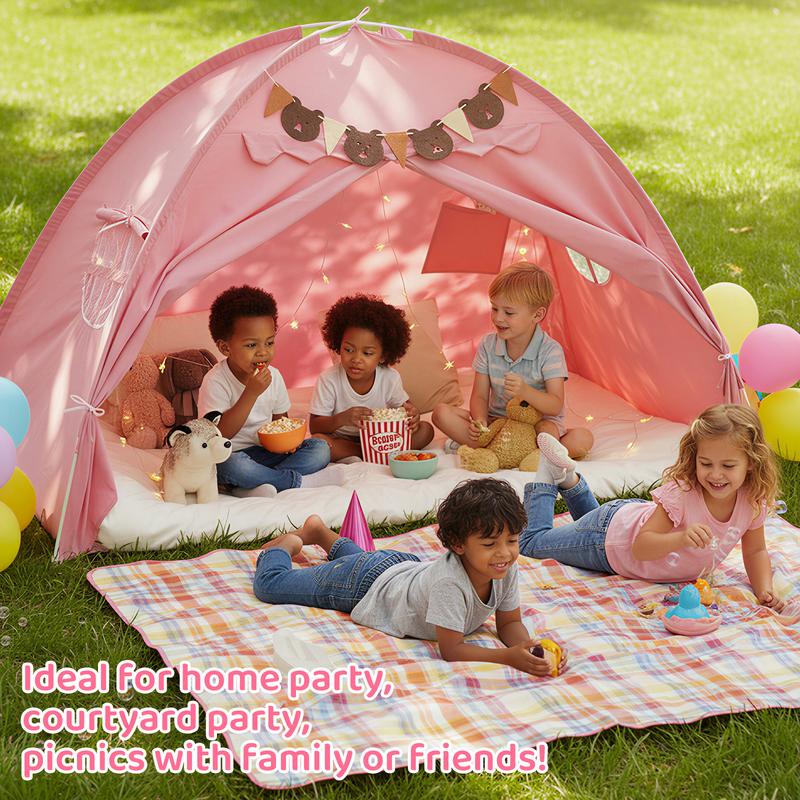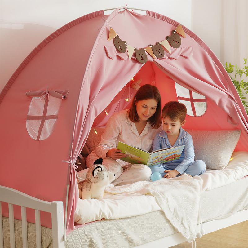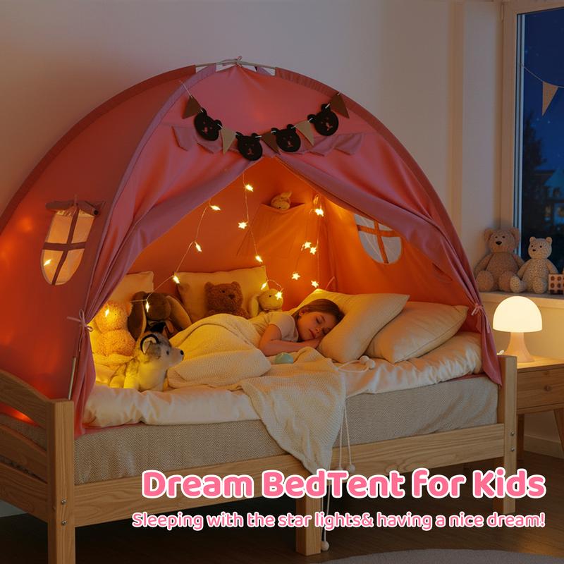 Kids' Dream Playhouse Tent for Twin Bed, Indoor Floor, Portable Play Tent, Breathable Sleeping Tent, with Stars Lights