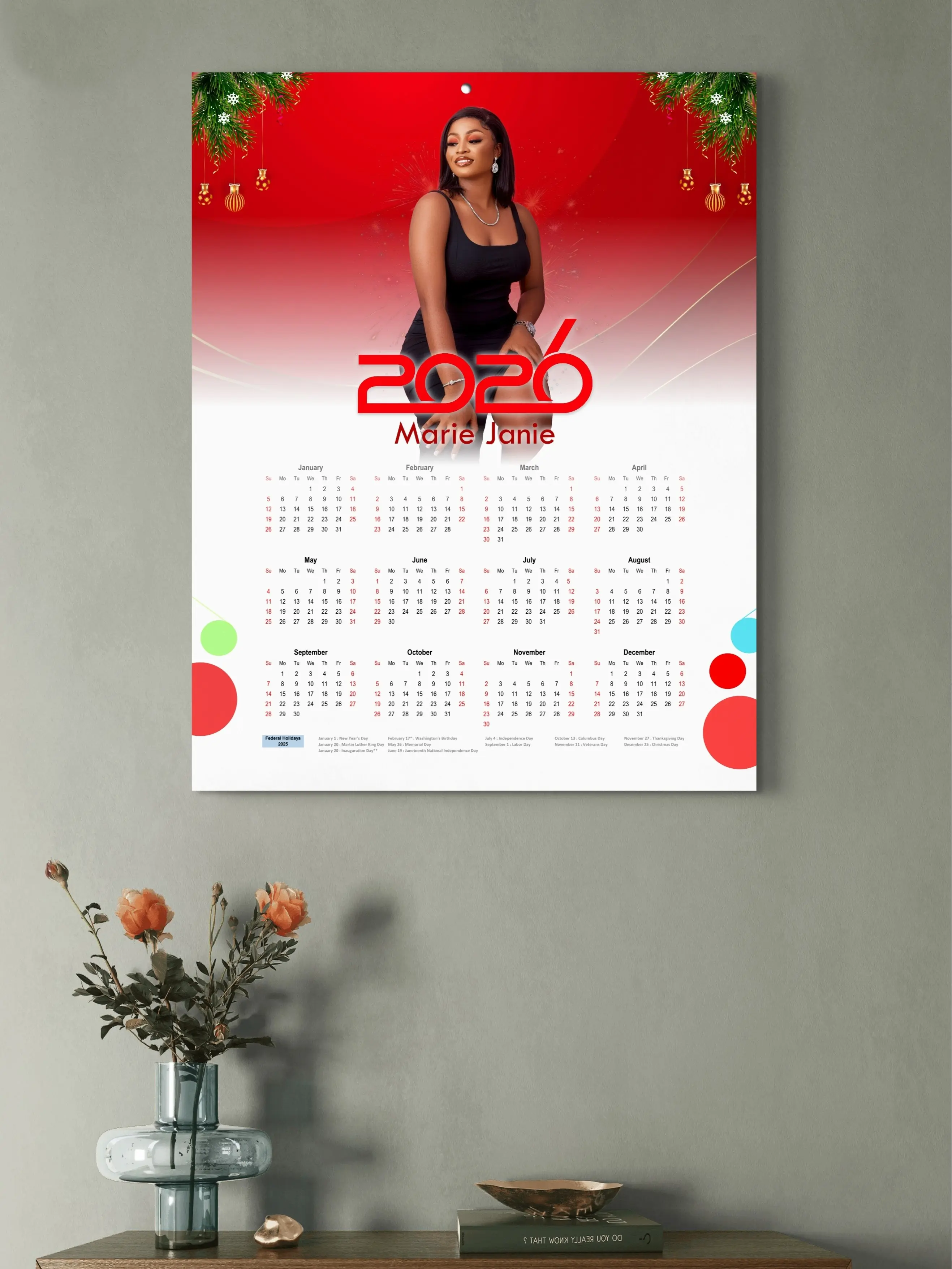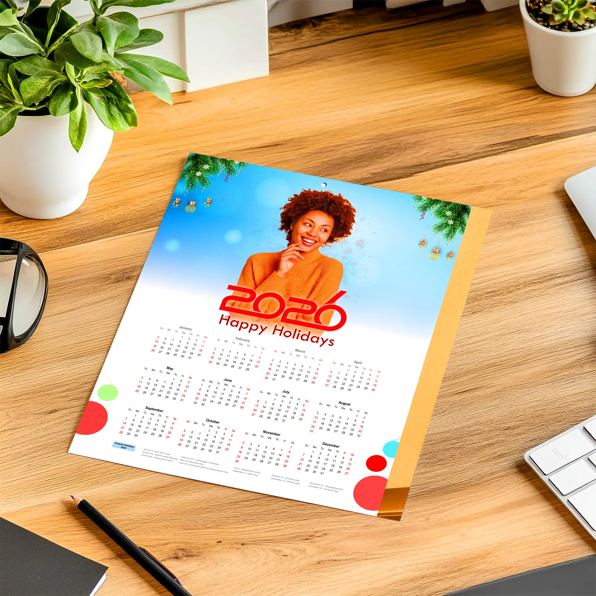 Upload your photo and text, and receive a custom wall calendar. Ideal for personalizing your space.