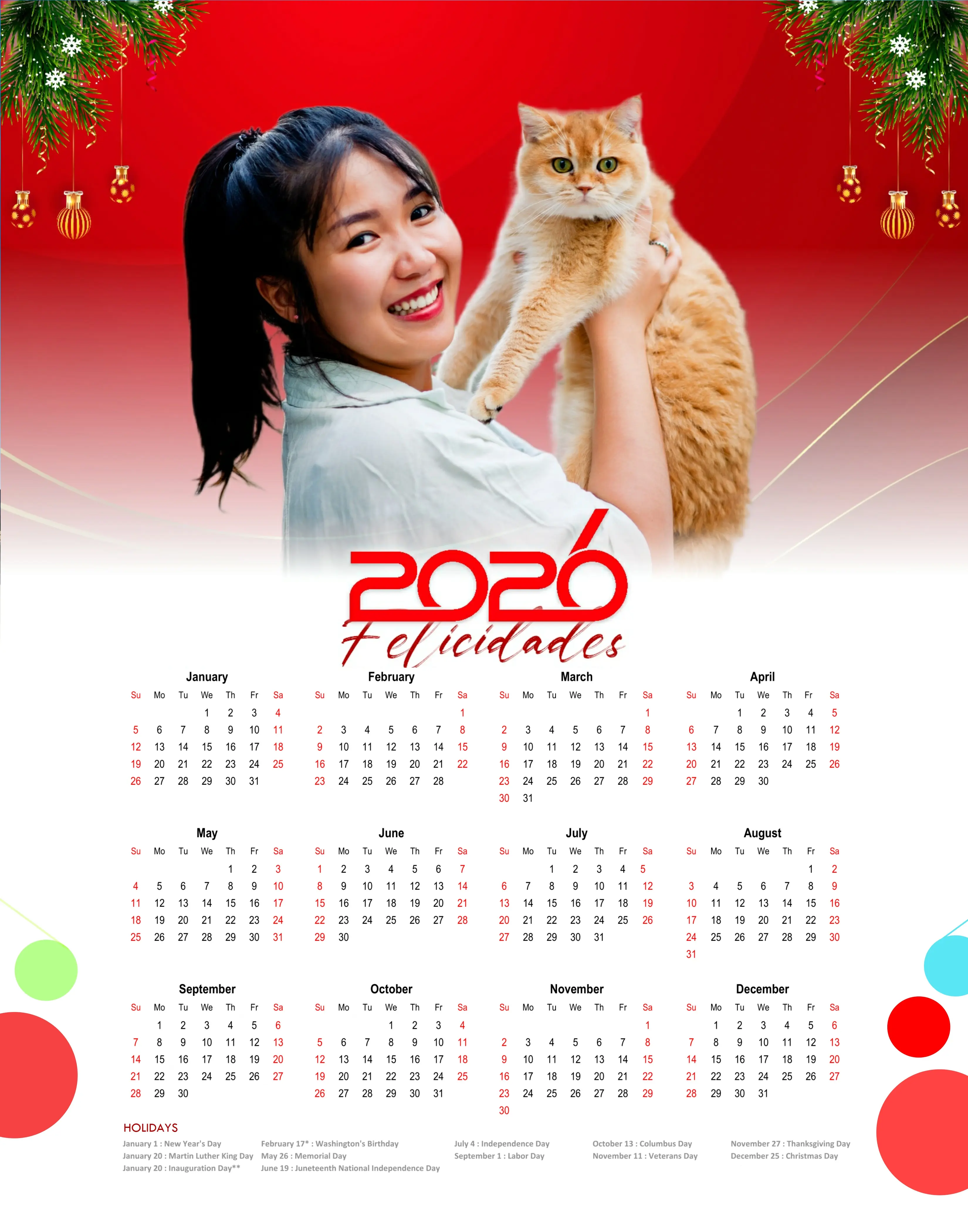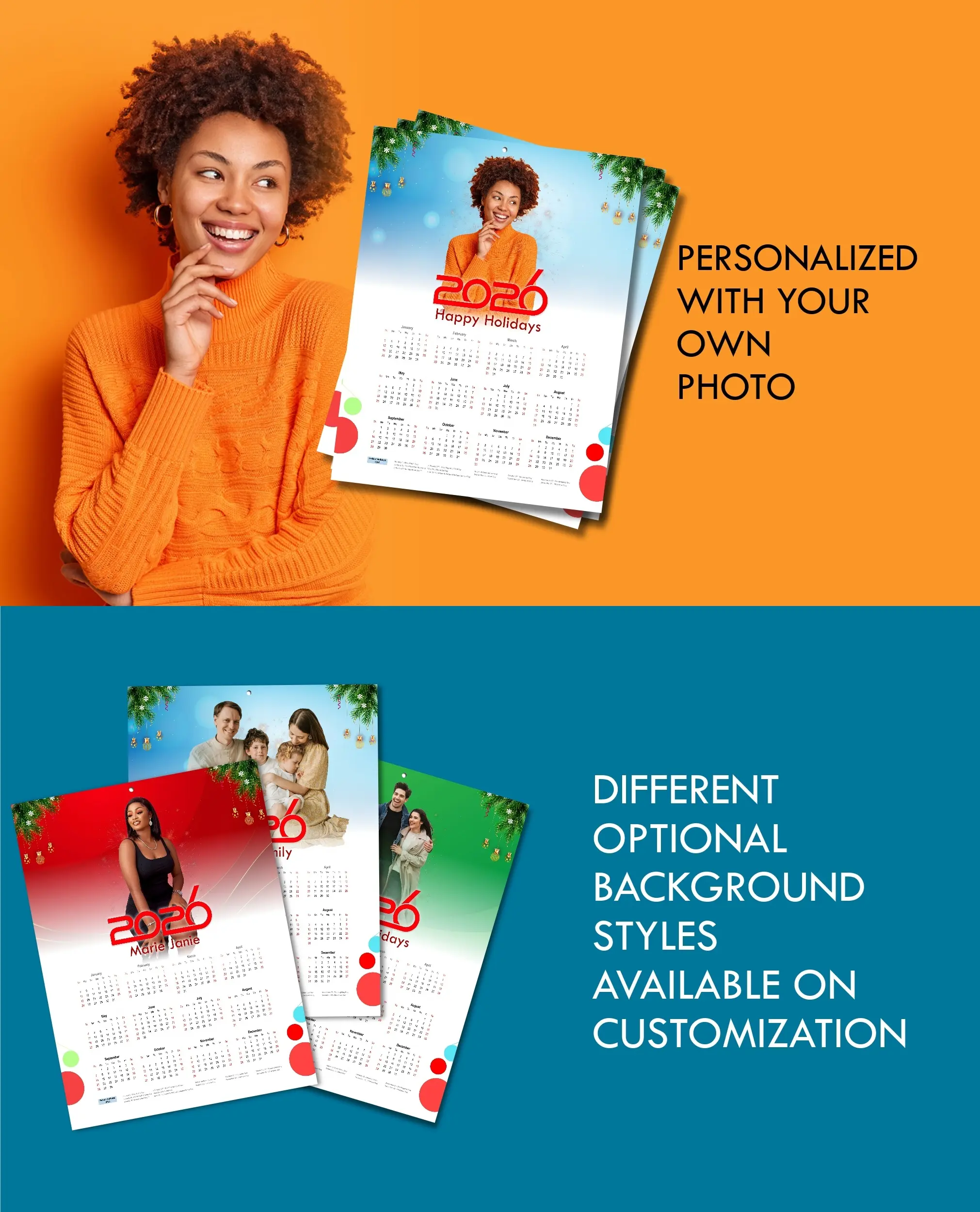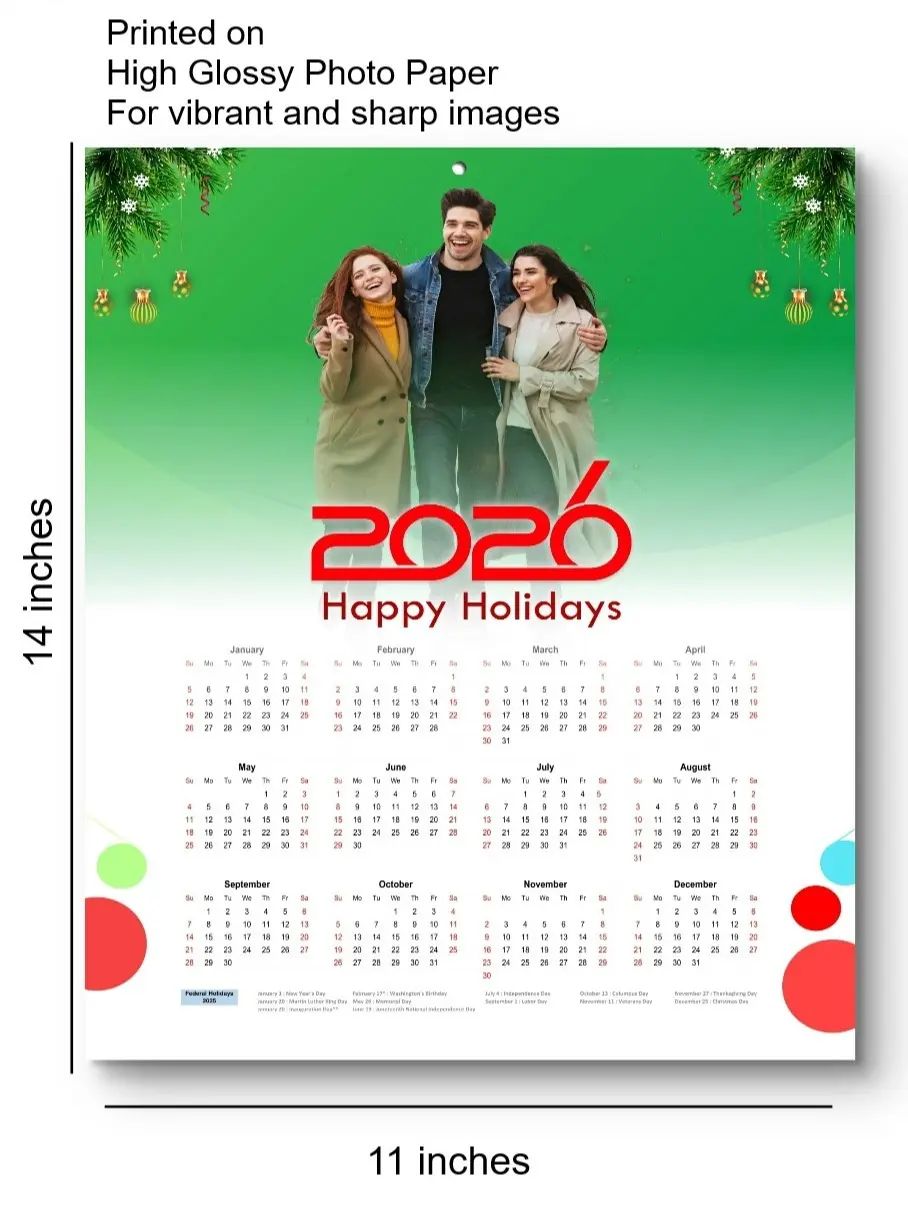 2026 Custom Wall Calendar - Personalized with your own Photo and Text - Printed on high glossy photo paper for sharp and vidid images (11x14 Inches)