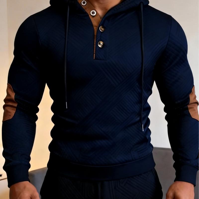 Men's slim fit hooded jacquard top with half open button design, elastic sports and casual sweatshirtMen's slim fit hooded jacquard top with half open button design, elastic sports and casual sweatshirtMen's slim fit hooded jacquard top with half open button design, elastic sports and casual sweatshirt