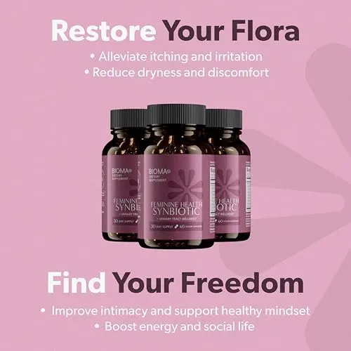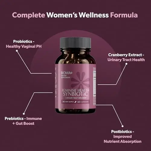 Feminine Health Synbiotic - Women's Health Supplement for Healthy Vaginal pH,Urinary Tract & Digestive Support - with Probiotics,Cranberry & Tributyrin - 60 Capsules (30-Day Supply)