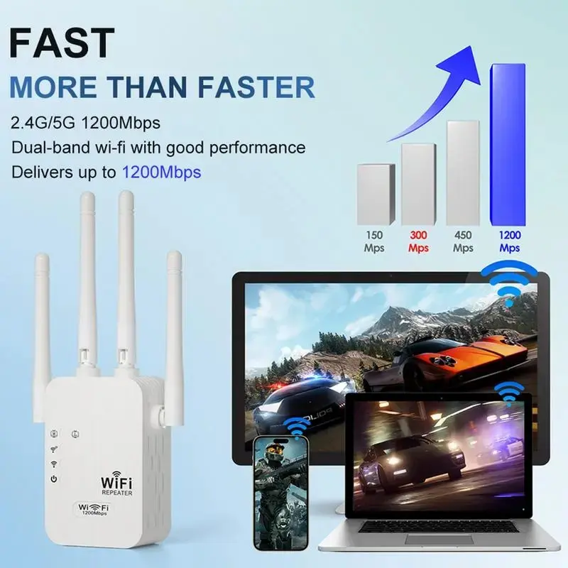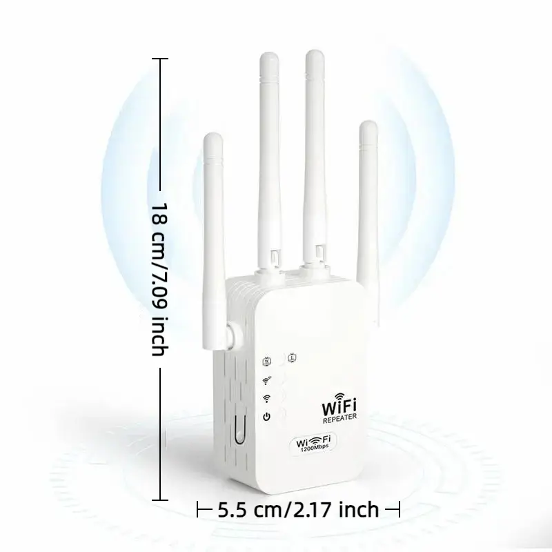 WiFi Extender 1200mbps Dual Band (5GHz/2.4GHz), Signal Booster Coverage 10,000 Sq Ft, 50 Devices, Ethernet Port, Us Plug, Wireless Signal Repeater