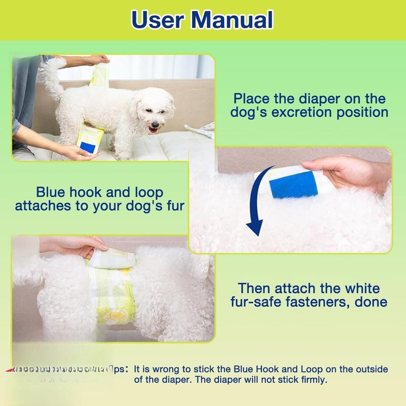 ·New Anti-Slip Design: Re-adjustable fasteners provide a snug, comfortable fit around your active pup's waist. The blue hook-and-loop keeps the diaper in place, preventing shifting.