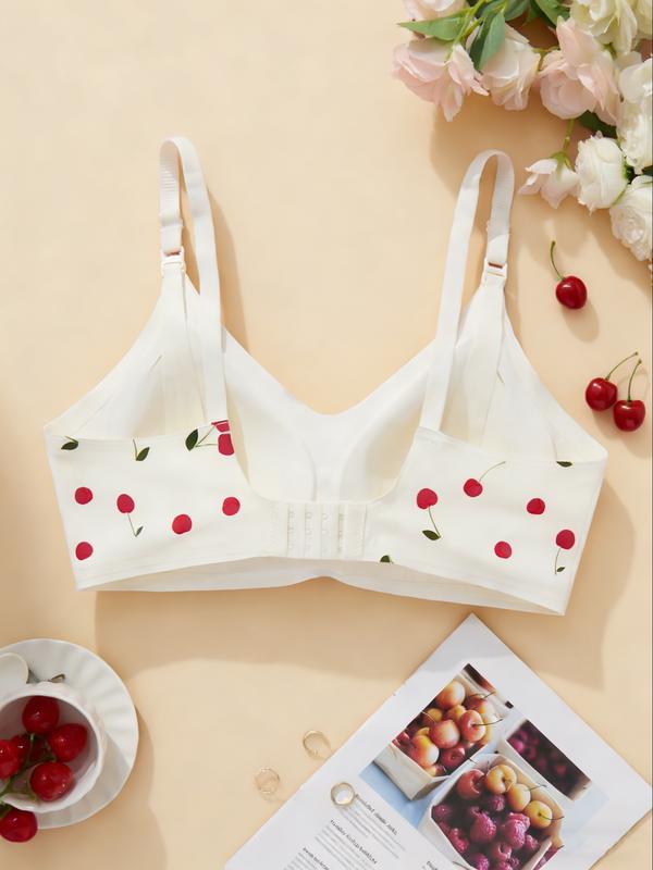 【Charming print】: Showcases a unique cherry print that adds a playful touch, setting it apart from standard maternity bras.