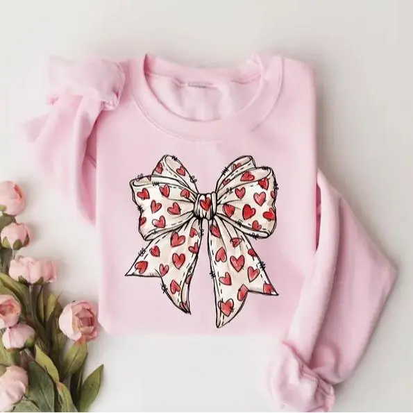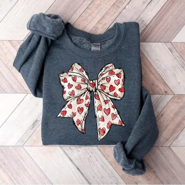 5. Coquette Valentine’s Day Heart Bow Sweatshirt – retro Valentine shirt with cute bow design, perfect girly gift and sweet outfit for the holiday. - LORA ATCHER