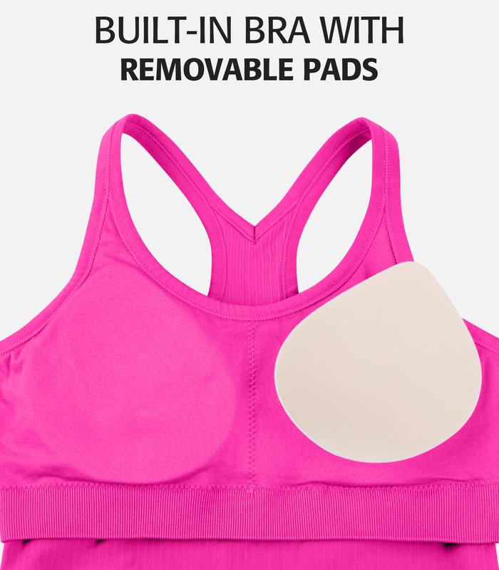 ✨ This set includes a built-in bra, providing added comfort and support. Perfect for women who need a comfortable and supportive top during sports activities. The racerback design ensures a snug fit, ideal for sports activities. This design offers a secure and comfortable fit for your active lifestyle.