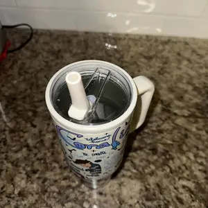 I love my cup but The only thing I don’t like is that the lid doesn’t go on straight the straw is off to the side and it’s bugging me other than that I love it it’s cute I got my daughter one to