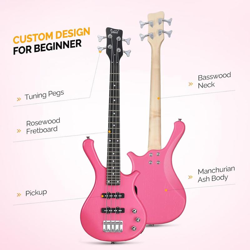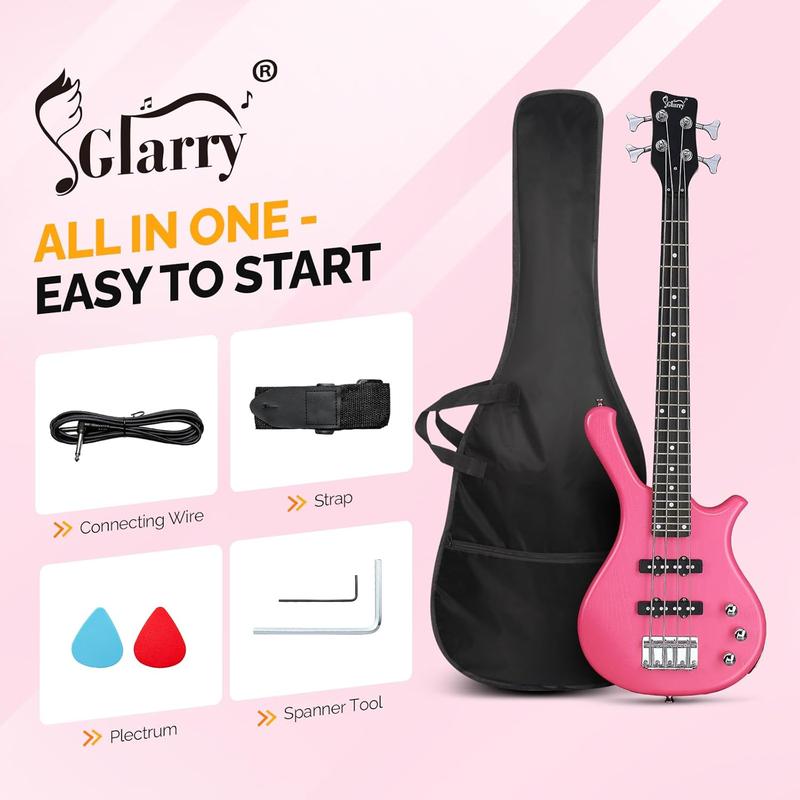 GLARRY specializes in musical instruments, offering a 36-inch bass guitar kit for beginners, adults, and travel. This kit includes a cable, strap, and bag. The rosewood fingerboard provides a fantastic feel. Each string height is adjustable. Tuning pegs are easy to use. Two single-coil pickups offer a great range of tones, ideal for rock and blues.
