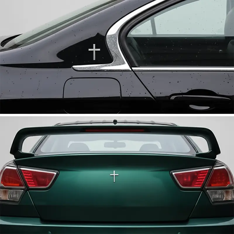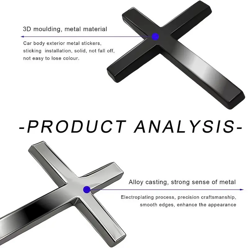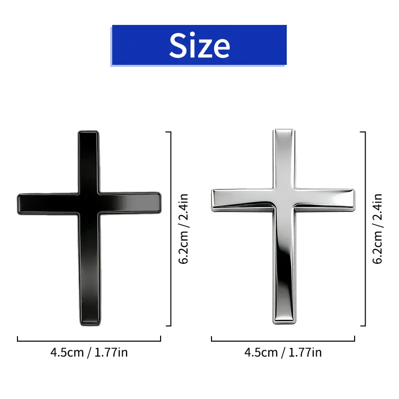 Features a metallic chrome-plated surface with high shine and reflectivity. This premium finish significantly enhances your vehicle’s visual appeal, making the cross stand out. It’s a striking addition to any car, motorcycle, or SUV.