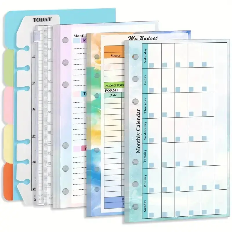 6 Hole Loose Leaf Paper, 82 Sheets/set Budget Weekly Planner Refillable Paper, Stationery & Supplies for Home School School Office
