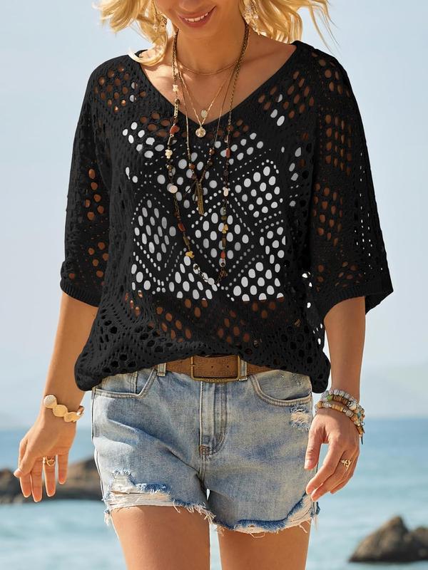 ·🌸 Features a flattering V-neckline, short sleeves, and intricate crochet detailing. Creates a delicate boho-inspired silhouette, combining modesty with sensual allure.