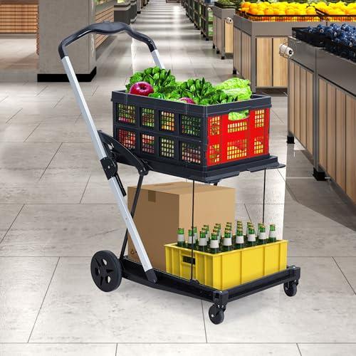 ·Versatile Utility Cart for Every Occasion – More than a folding grocery cart, this 2-tier trolley serves multiple purposes: carry groceries, laundry, tools, supplies, or even picnic essentials. Perfect for home, warehouse, travel, camping, or daily errands—your reliable multi-purpose collapsible utility cart for any need.