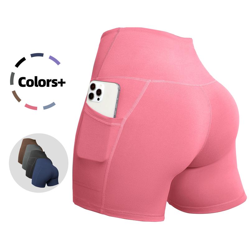 Women's High Waisted Biker Shorts 4 Packs Buttery Soft Stretchy Booty Lifting Tummy Control Yoga Gym Running Athletic Workout Shorts with Phone Pocket