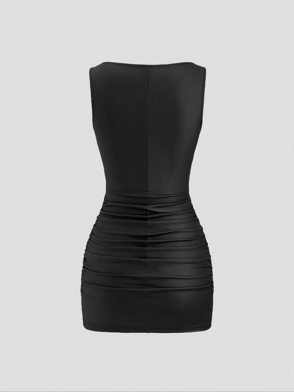 Women's solid color slim-fit sleeveless pleated faux leather dress #tiktokshopholidayhaul #elegantdress #dress #spotlightfinds #bodycondress