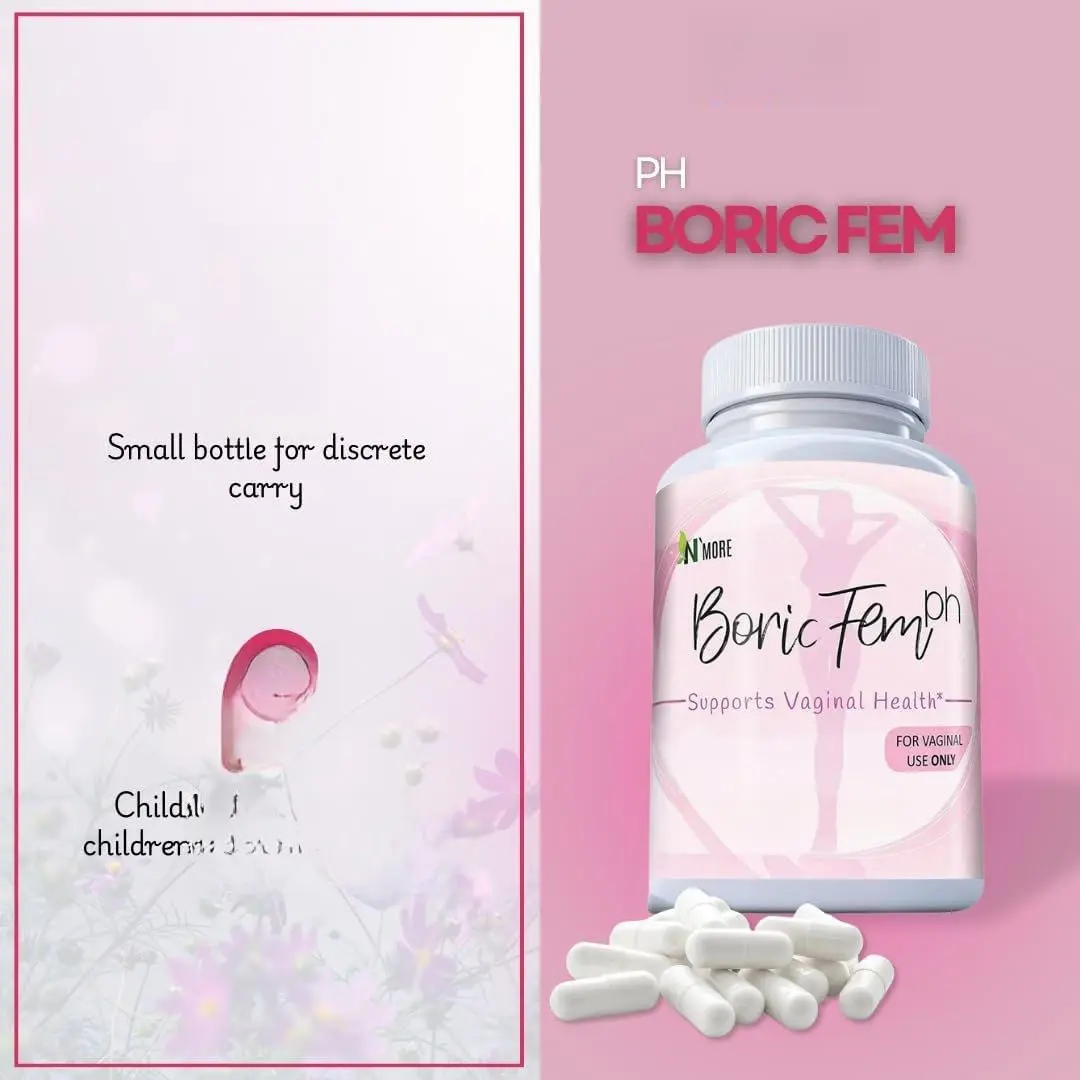 N’More Boricfem Vaginal Capsules – 600mg – Made in USA – Intimate Wellness & pH Balance Support – 30 Capsules