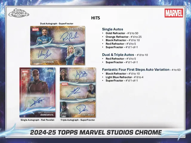 - 2025 Topps Marvel Studios Chrome arrives as the first ever Topps product featuring characters from the Marvel Cinematic Universe!