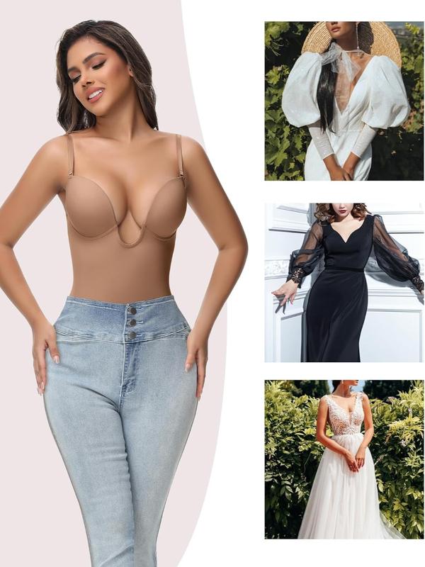 ·Deep U-neck and low back design works with a variety of dresses, including wedding gowns.