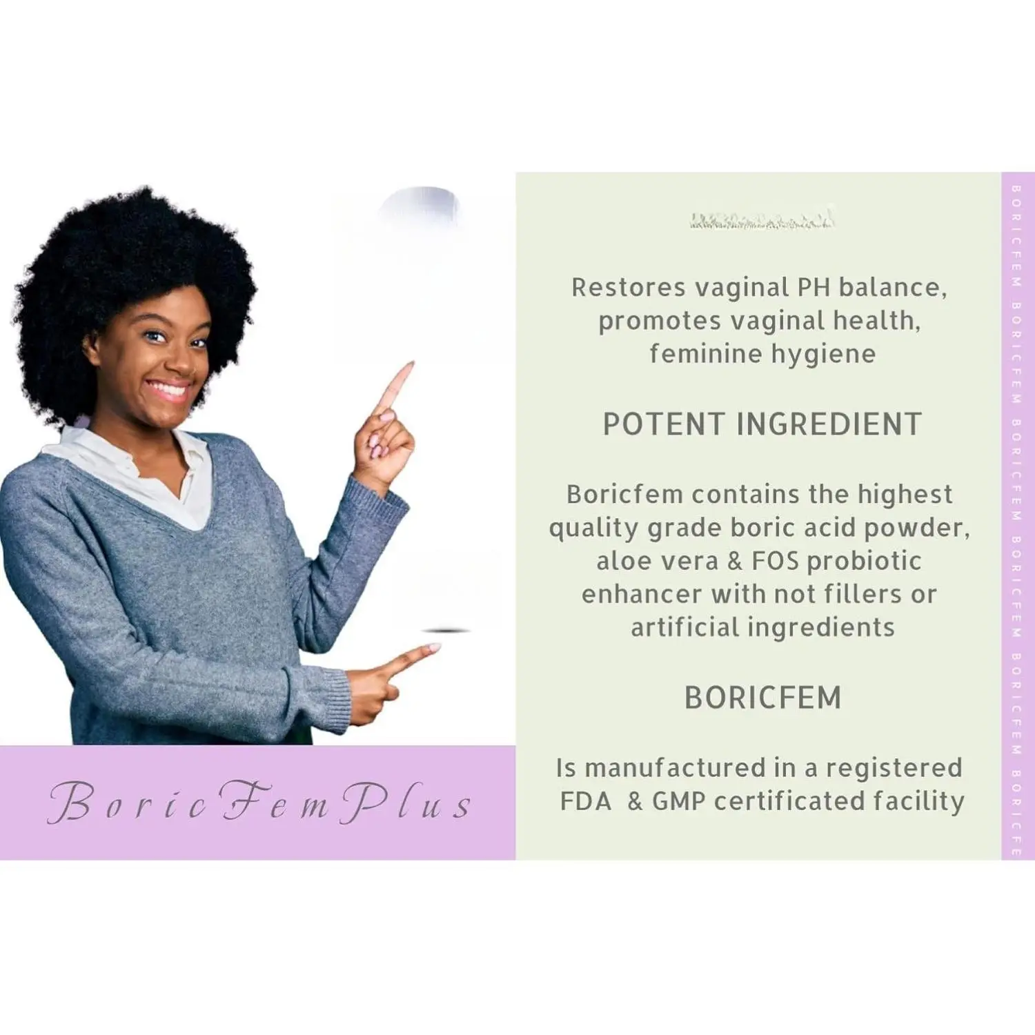 ·NATURAL SUPPORT FOR FEMININE HEALTH: Boricfem Plus helps support feminine comfort and balance with a natural blend of boric acid, aloe vera, and FOS probiotic enhancer—made in the USA with premium ingredients.