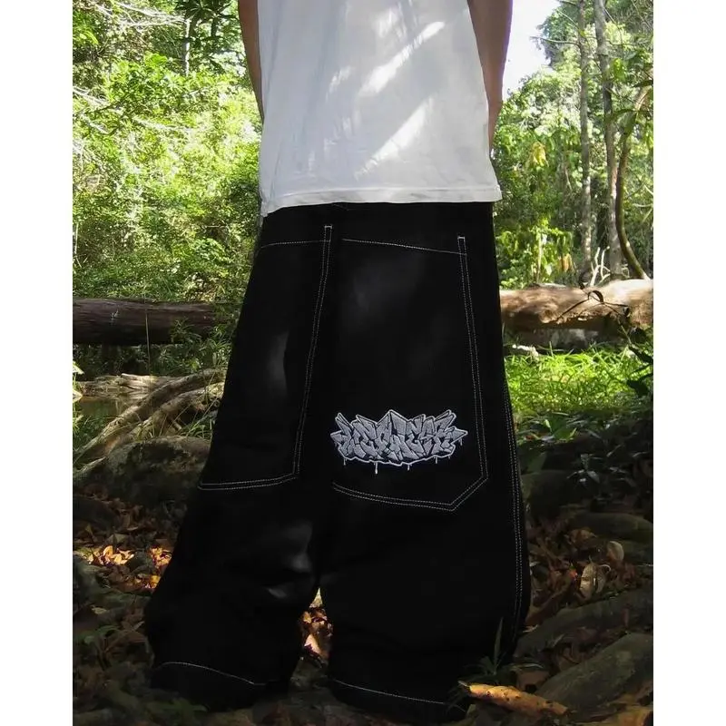 5. VintageMenJeansGothicHighWaistWideTrouserHarajukuVapor95DenimPantsEmbroideredBaggyJeansStreetwearY2KJeans
