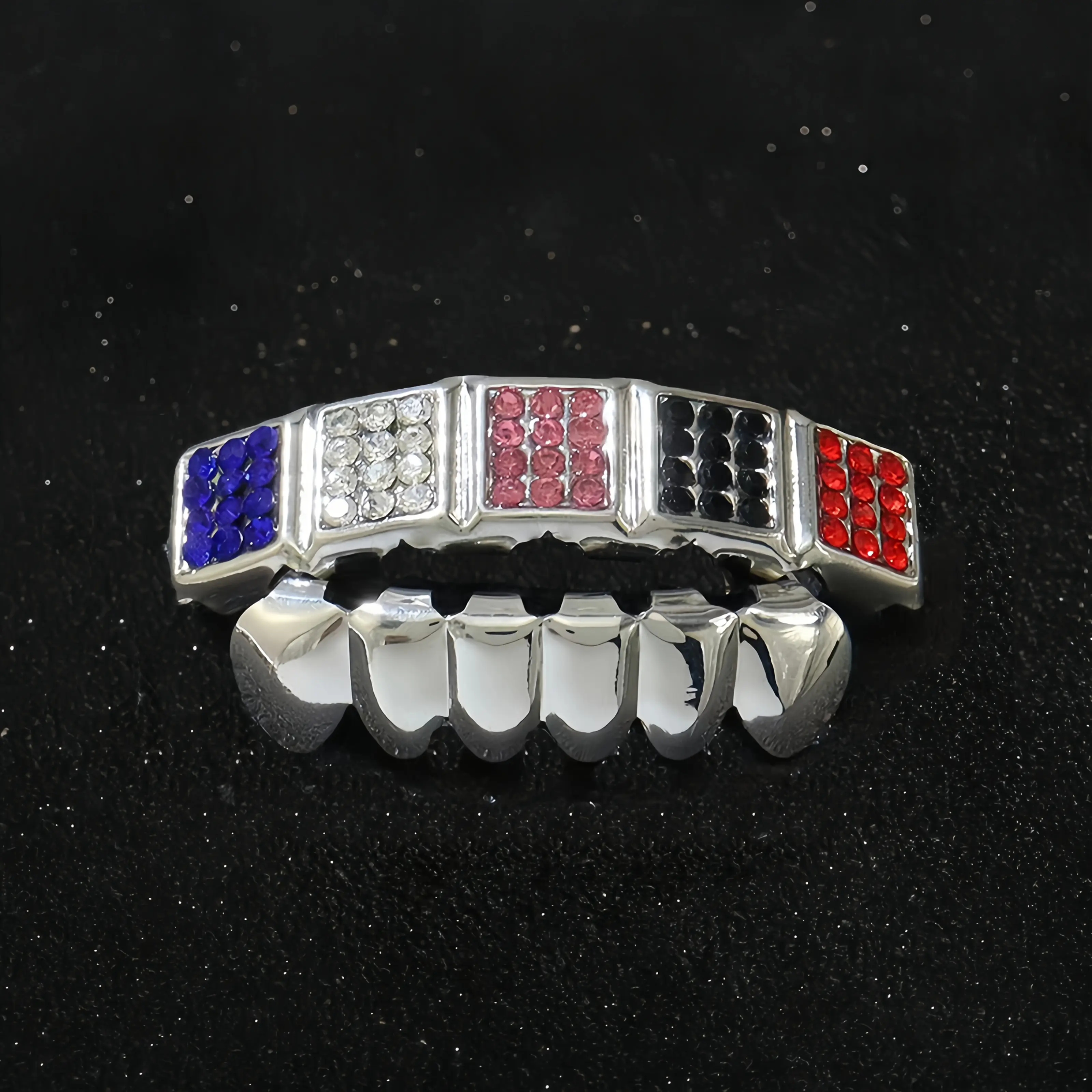 2 pcs [Rugged Hip Hop Grillz] 8 Teeth Customizable Rugged Hip Hop Grillz - Top and Bottom Fit for Hip Hop Cosplay Costume and Rapper Accessory Oral