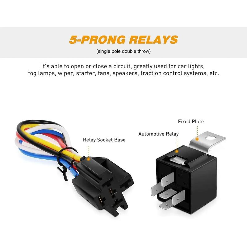 ·Great Quality: The durable relay and heavy-duty relay socket with 5 wires are made of high-grade materials to ensure superior quality.