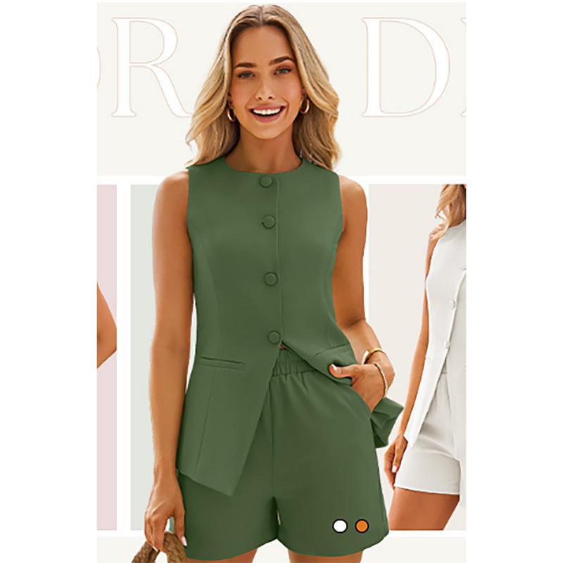 ·The 2 piece summer sets consist of a suit vest and shorts.Sleeveless, crew neck, solid color and front button designs can provide an exquisite elements to the top. High waist shorts are designed for comfort and slimming, make more classic and generous