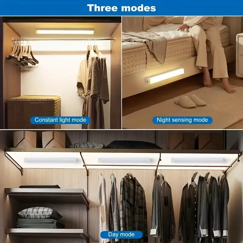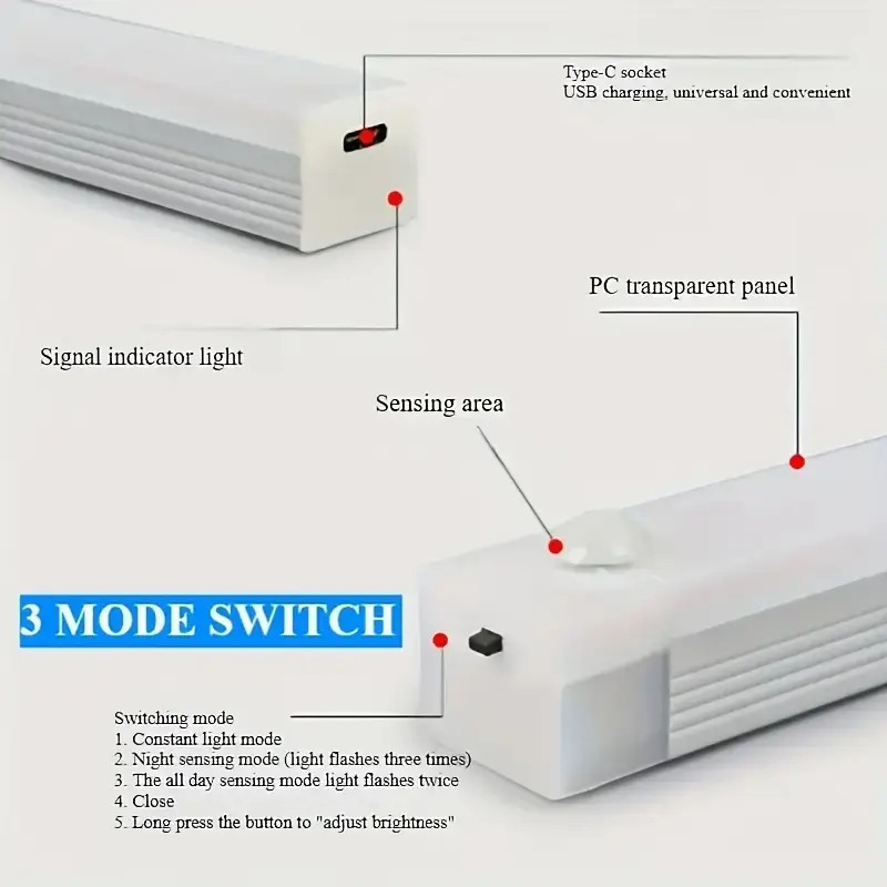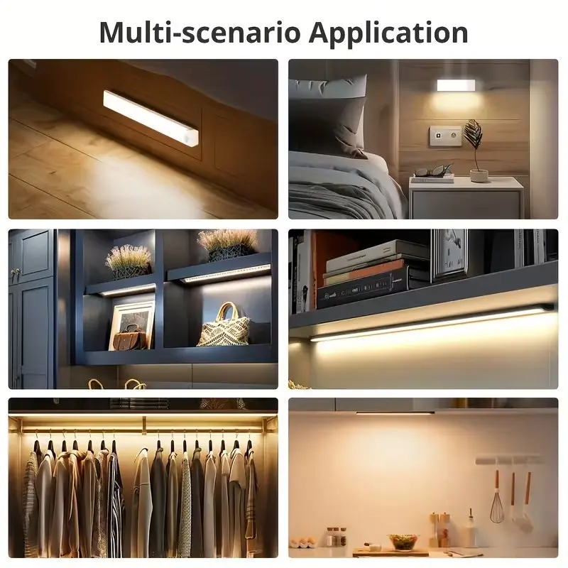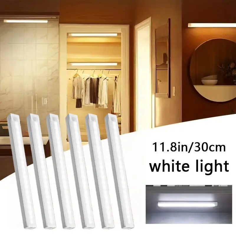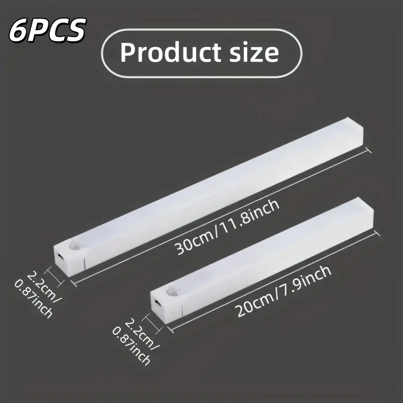 New 6pcs LED Sensor Lights, Rechargeable, with Motion Sensor, Wall-Mounted Light Strips, Adjustable Brightness, Indoor Night Lights, Suitable for Cabinets, Dormitory Study Lighting, Applicable for Home, Bedroom, Stairs, Office, Kitchen