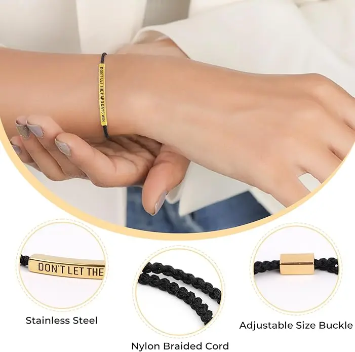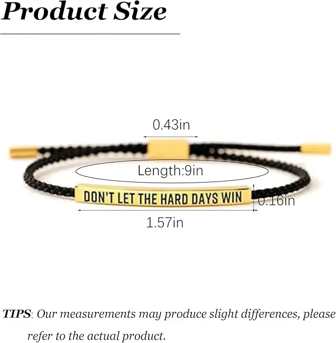 Dont Let The Hard Days Win Bracelet,Handmade Braided Adjustable Wrap Stainless Steel for Women Men - Inspirational Jewelry Gifts