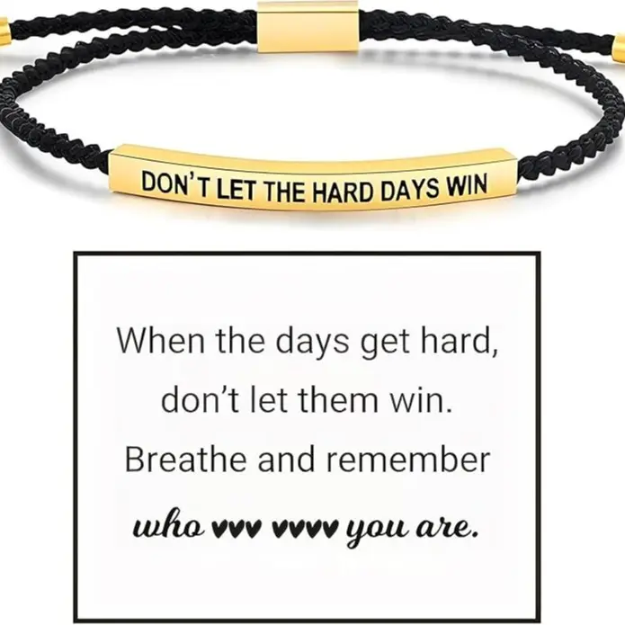 Dont Let The Hard Days Win Bracelet is a handmade braided adjustable wrap. It's crafted for both women and men, making it a versatile accessory. The bracelet features stainless steel, ensuring durability and a sleek look. Perfect for those seeking inspirational gifts.