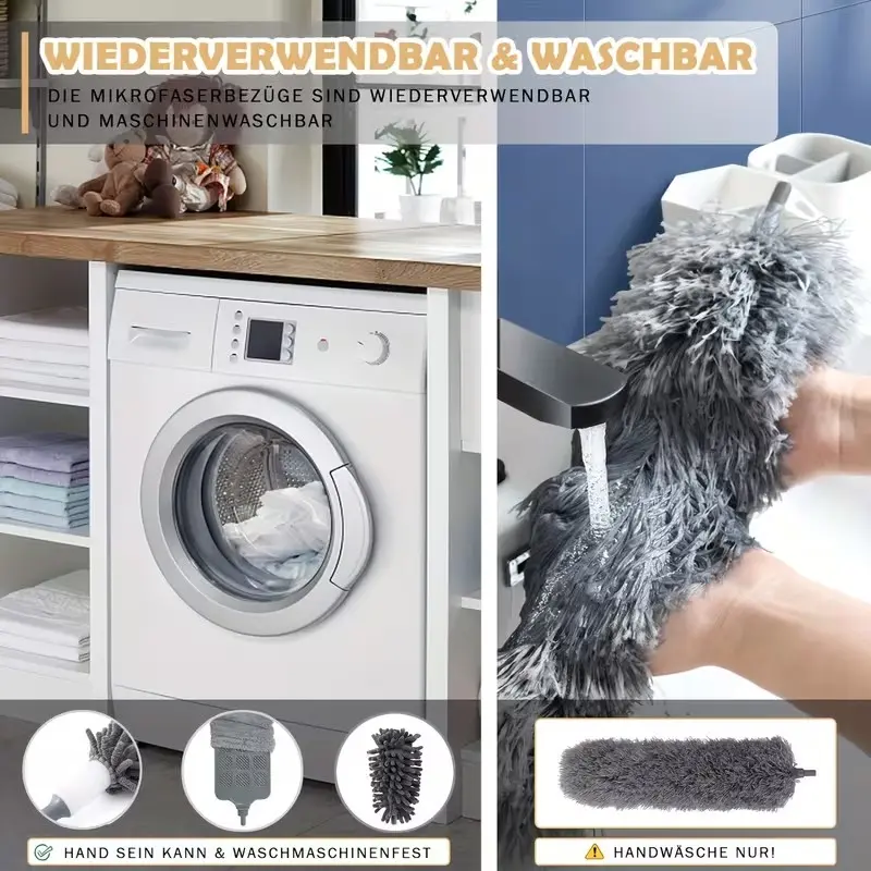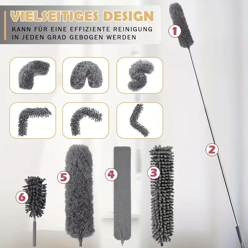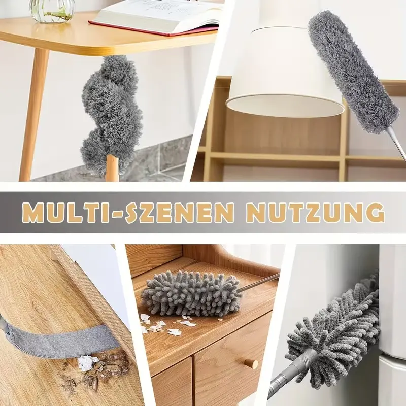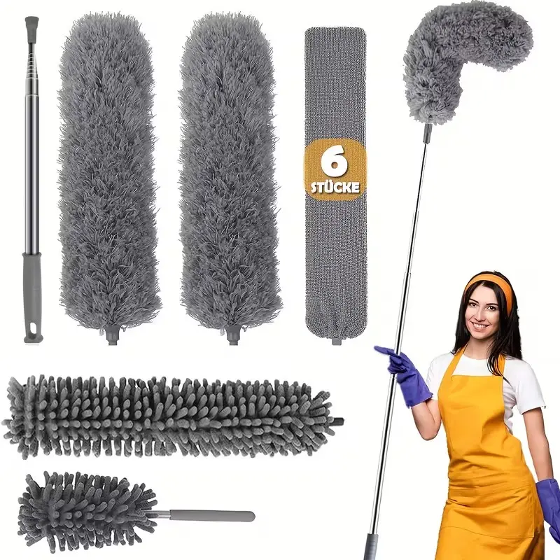 Extra-Long 111" Retractable Microfiber Duster with Stainless Steel Extension Pole - Ideal for High Ceiling Fans & Car Cleaning, Gray, Dusters for Cleaning