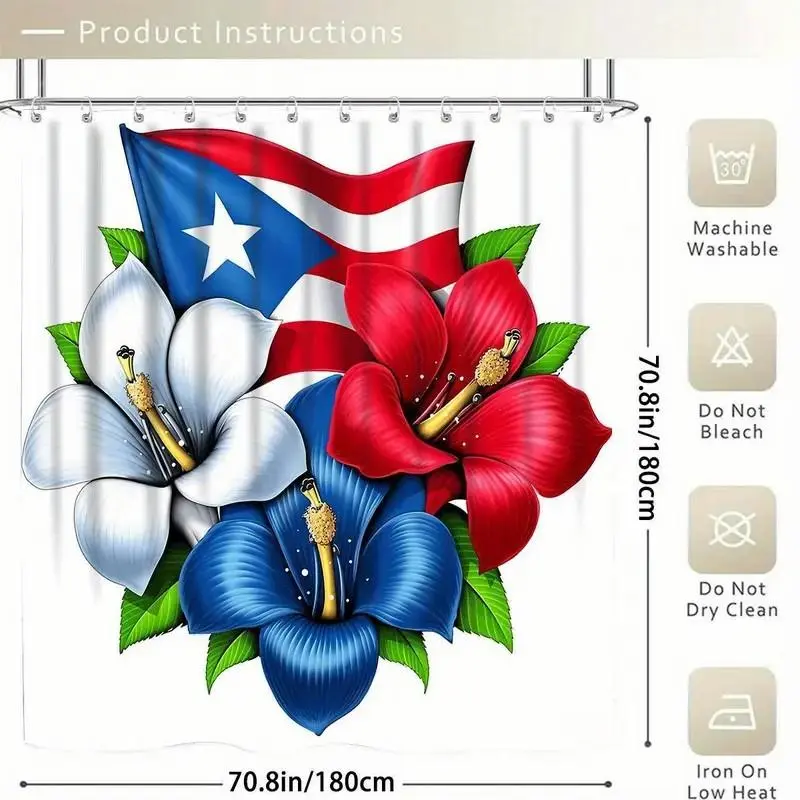 5. 1/4pcs Puerto Rican flag pattern shower curtain set, includes non-slip mat, U-shaped rug, and toilet seat cover. Perfect for bathroom decoration, partitioning, and beautifying the space. Comes with 12 shower curtain hooks. Bathroom Decoration Accessories