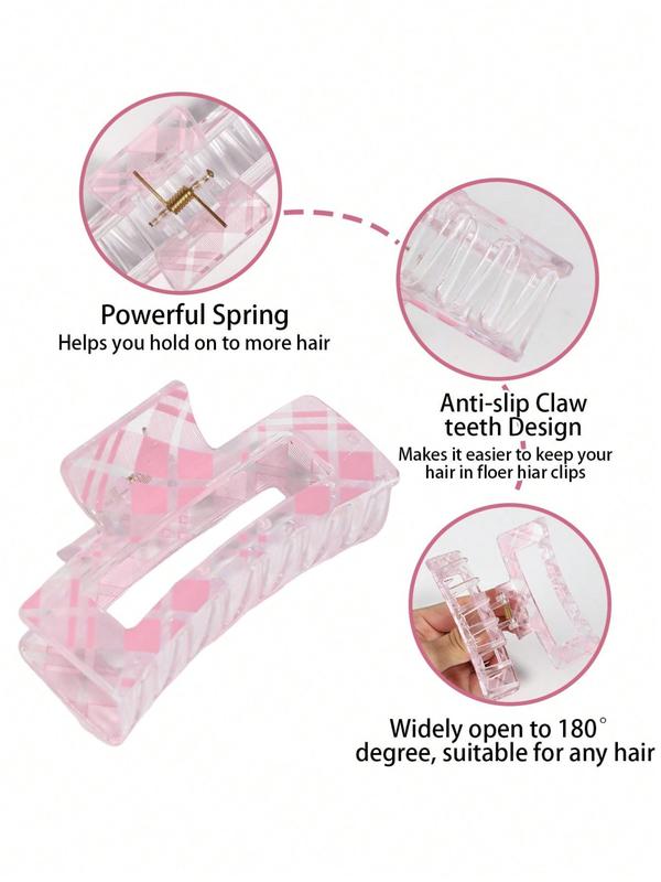 Large Sweet & Chic Pink Rectangular Hair Claw Clip, Strong Grip, Minimalist Daily Women's Hair Accessory, Suitable For Thick/Thin Hair, Elegant & Cute Casual Street Style, Suitable For Spring, Summer, Autumn, Winter, Hair Clips