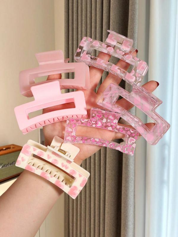 5. Large Sweet & Chic Pink Rectangular Hair Claw Clip, Strong Grip, Minimalist Daily Women's Hair Accessory, Suitable For Thick/Thin Hair, Elegant & Cute Casual Street Style, Suitable For Spring, Summer, Autumn, Winter, Hair Clips