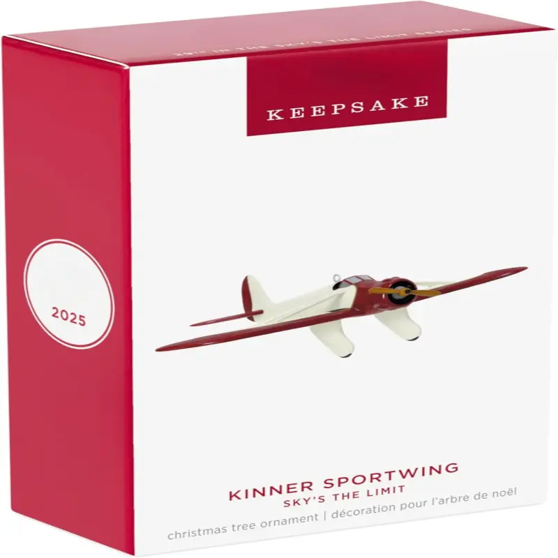 Send holiday spirits soaring with this year's addition to the Sky's the Limit series.The Kinner Sportwing Christmas tree ornament features a creamy white airplane with rich brown accents, a spinning propeller and detailing that will delight any aviation enthusiast.29th in the Sky's the Limit Keepsake Ornament series.With unparalleled artistry and exceptional detail, Christmas ornaments are perfect for preserving precious memories, commemorating special milestones and celebrating individual hobbies and interests.