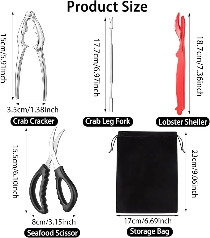 This set is designed for seafood enthusiasts. It provides all the tools needed for a hassle-free seafood dining experience. The included storage bag ensures your tools are always ready when you need them. Enjoy your favorite seafood dishes with ease.