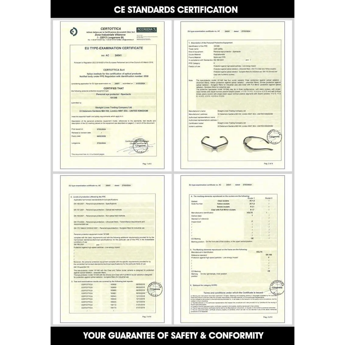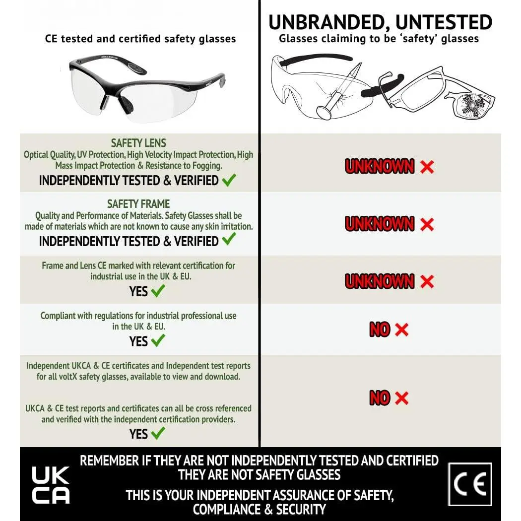 ·ANSI Z87.1+ & CE EN166F, frame and lens ANSI & CE marked.