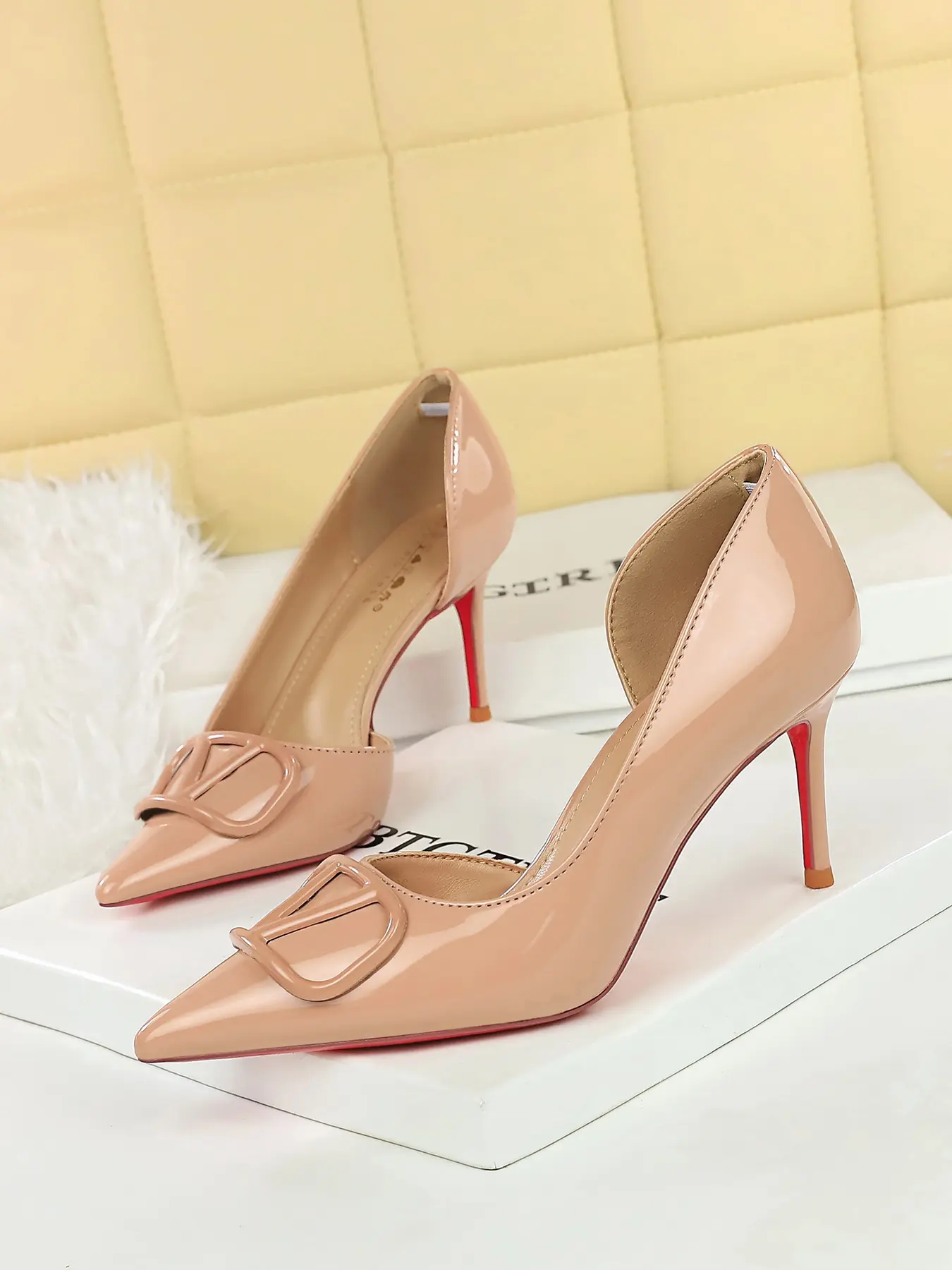 9265-Ak117 Elegant Women's V-Cut Pointed Toe High Heels, Stunning High Gloss Finish, Chic Party Shoes for Any Occasion9265-Ak117 Elegant Women's V-Cut Pointed Toe High Heels, Stunning High Gloss Finish, Chic Party Shoes for Any Occasion